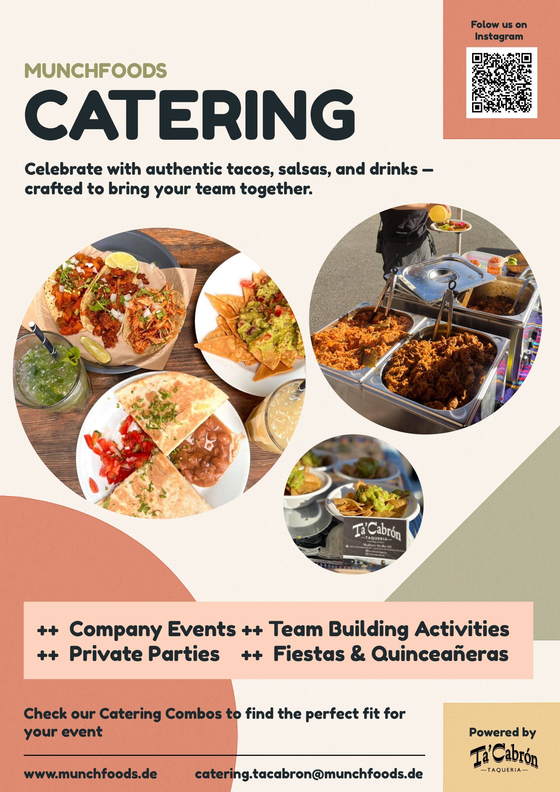 For inquiries or bookings, contact us at catering.tacabron@munchfoods.de